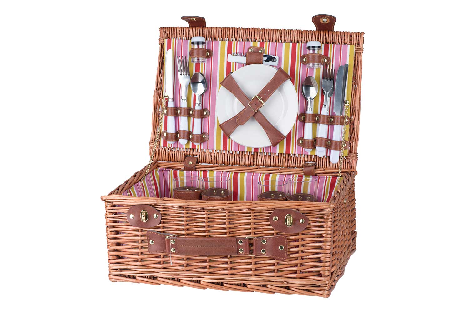 Cosy & Trendy Picknickmand Dots Wilg 4P 44X30XH20cm Borden- Bestek- Wijnglazen