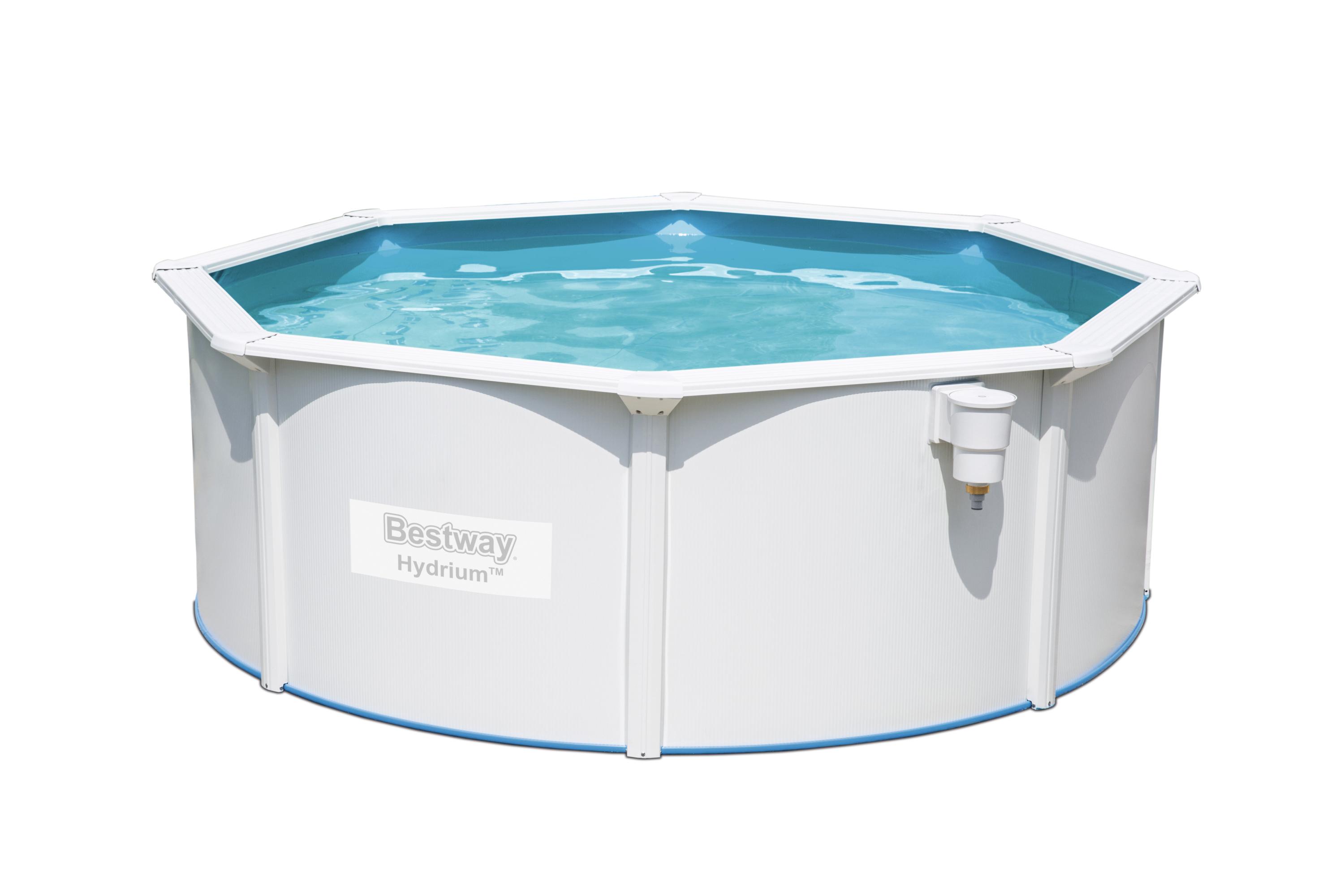 Maak van uw tuin een zwemparadijs met het Bestway Hydrium zwembad set! Met de set, inclusief zandfilterpomp, chloordispenser, afdekzeil en grondzeil, is het gemakkelijk om uw eigen zwembad te hebben. Geniet van de zomer met uw gezin!