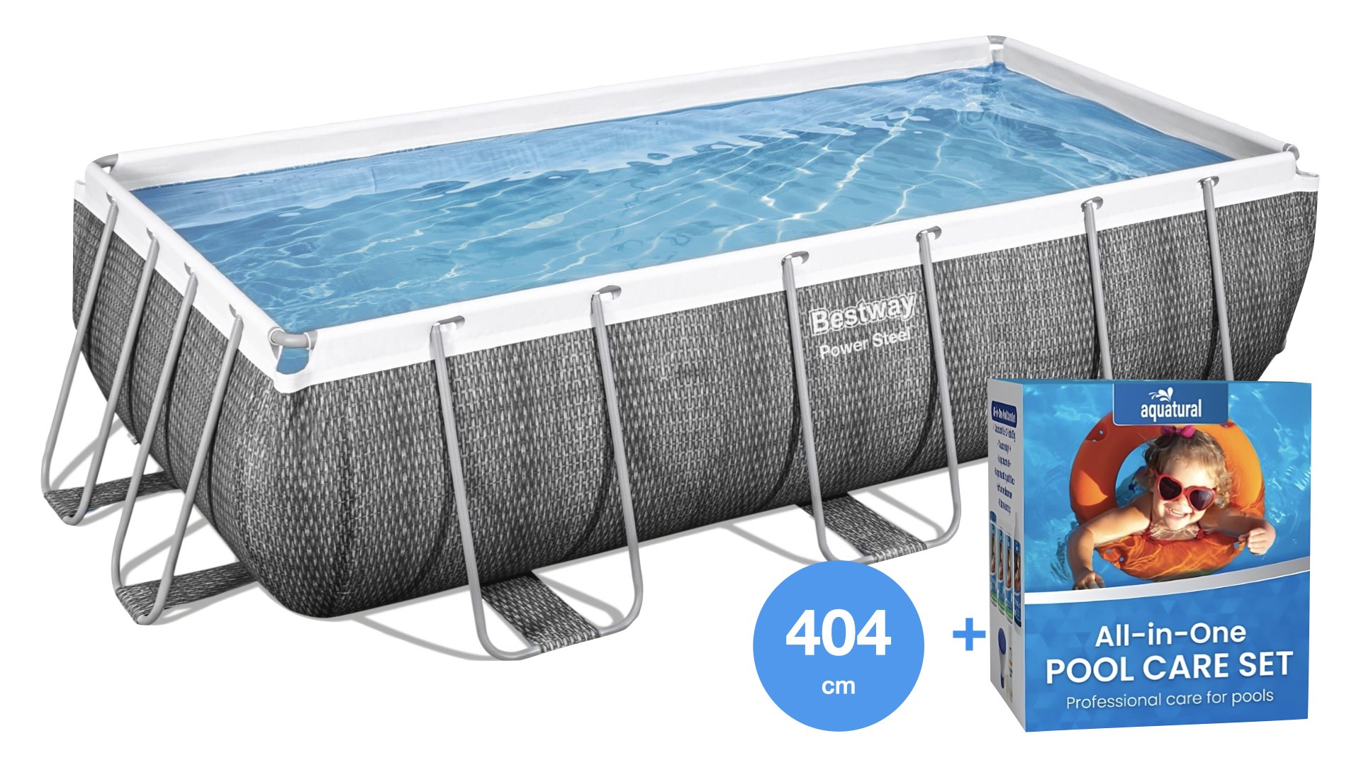 Geniet van een groot, sterk en duurzaam zwembad met Bestway Power Steel. Compleet met filterpomp, zwembadtrap en afdekzeil. Inclusief Aquatural onderhoudsset. Bestel nu met gratis verzending!