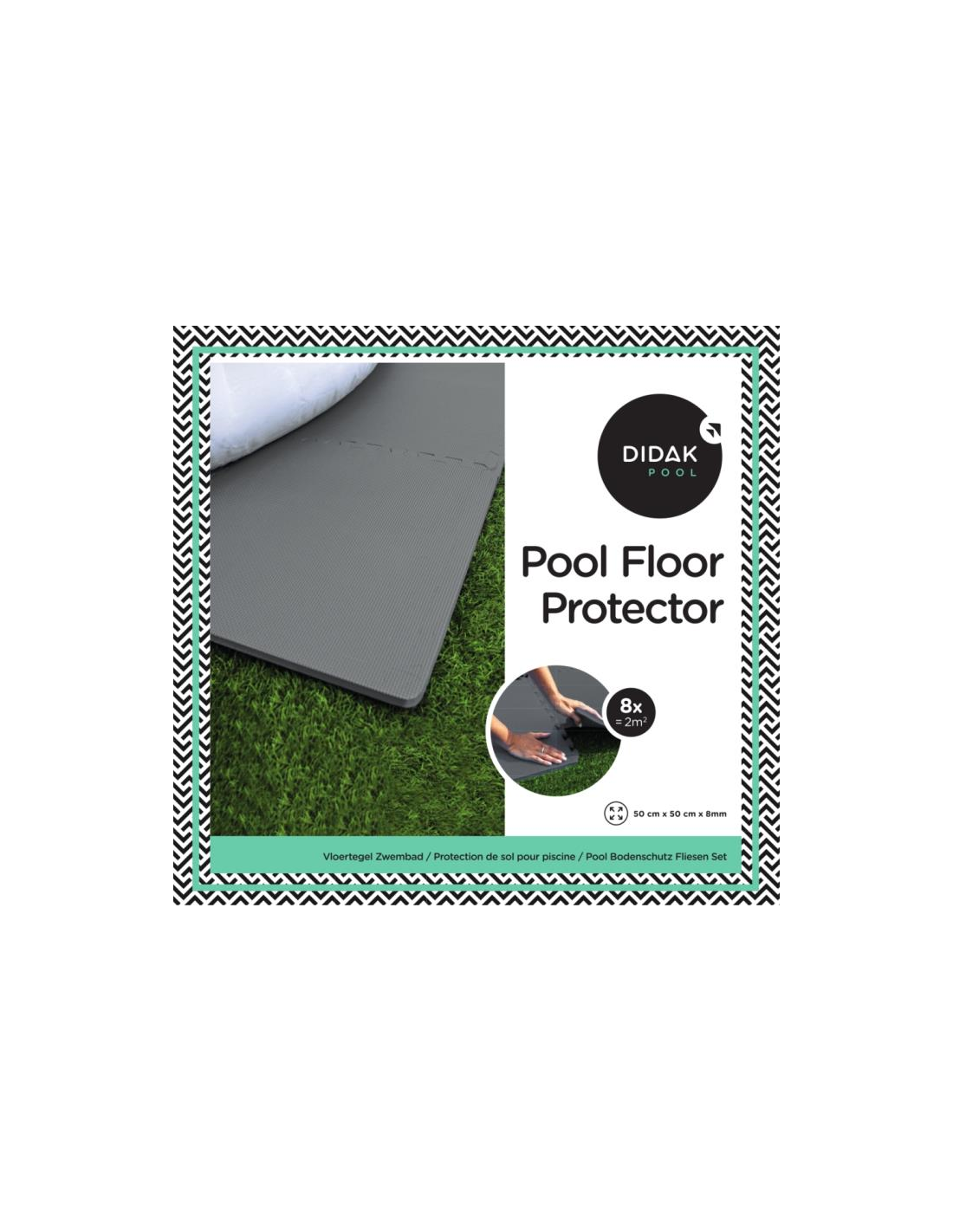 Bescherm de onderkant van je zwembad of spa met deze Didak Vloertegels. Met 8 puzzelstukken van 50 x 50 x 0,8 cm kun je tot 2 m² oppervlakte bedekken. Bestel nu en geniet van een zorgeloze zomer!