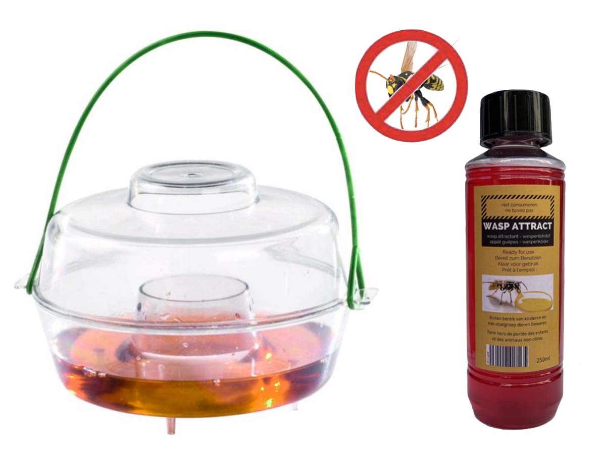Bestrijd wespen effectief en voorkom overlast met Wespenval + Wasp Attract 200 ml van BSI. Houd wespen op afstand!